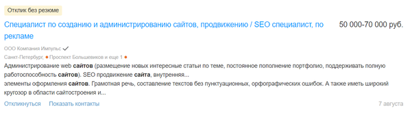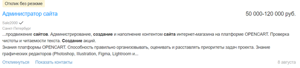 Если говорить о нижней границе заработка, то вакансии на таких специалистов начинаются от 30 000 руб. При этом потолка по заработка нет — вы можете зарабатывать и 200 000 руб. если, например, откроете свою веб-студии и создадите свою команду.