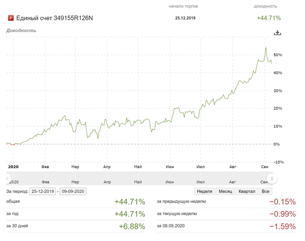 Дoхoдность моего портфеля с начала 2020 года: +55%