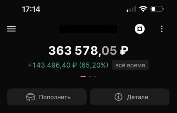 На днях она мне прислала скрин со своего брокерского счета - результат за 2,5 года: