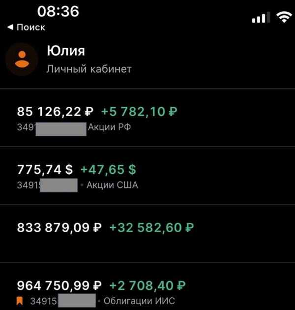 Похвастаюсь результатами моих учеников😊 Мне присылают скрины из личных кабинетов ученики курса "Инвестируй в плюс"